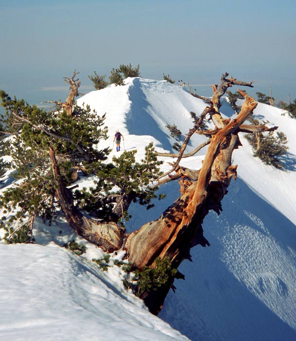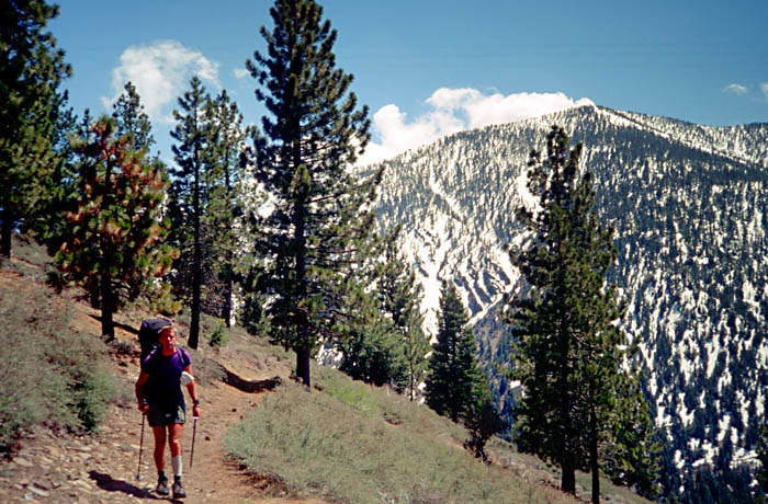 Wrightwood Next day (20th May) we walked on in clear air along the snow crusted ridge with the path visible now and then. We lost trace of the path completely as we descended in deep snow down the steep north slopes to Wrightwood.