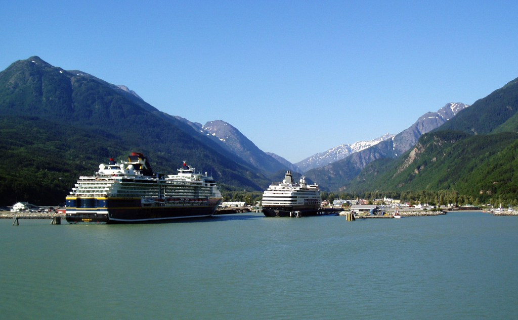 To get there we took a boat trip north from Juneau up a fjord to the town of Skagway where we were able to sit out on deck in the sun taking in the views of snowy peaks on either side.