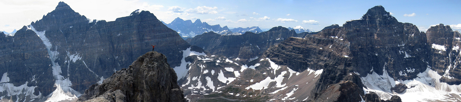 Eiffel Peak is near Lake Louise and south west of the more dominant Mount Temple (which we climbed in 2002). It is a magnificent viewpoint and thoroughly recommended.