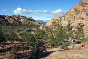 1008 068 DSC04075 climbing out of basin south of lower mountain- marker rock on horizon right
