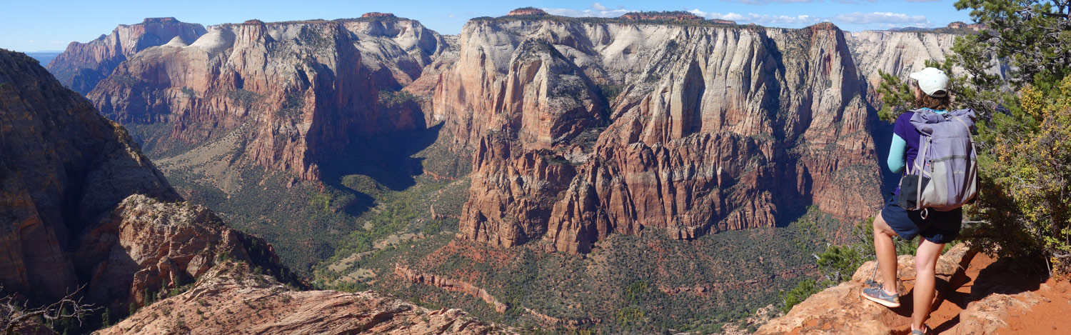 In Zion we were looking for something to do on our last day of the holiday that avoiding the crowds. We succeeded as we didn’t see anyone else all day! Also we had a splendid day of slickrock, bushwacking, scrambling and a trail to the Deer Trap Mountain with great views down to Zion Valley.