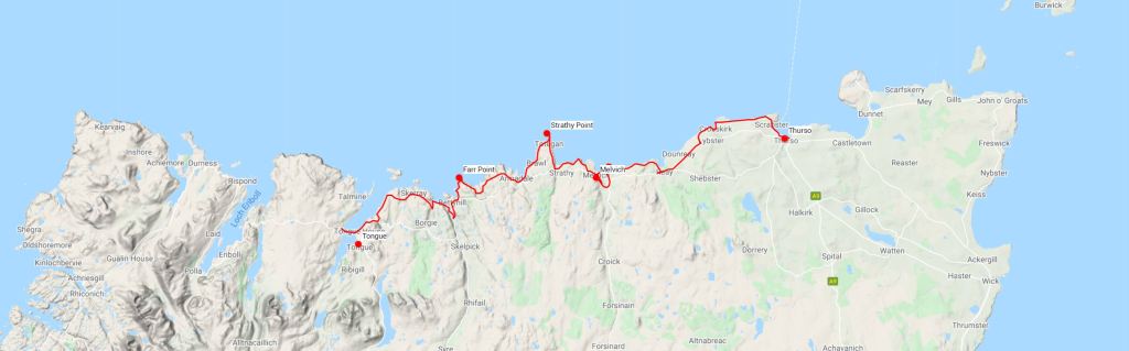 A walking route along this coast called the North Coast Trail is being investigated and my route may well coincide with this. This route has great potential with the grand wild scenery along with it linking up both the John O’ Groats Trail to the east and the Cape Wrath Trail on the west. Any development of trails and signposting would be really helpful and this could be an excellent backpack…..