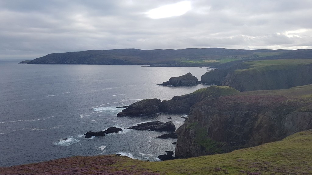 Tuesday 18th August 2020 Midges chased me off in the morning as I headed north to Farr Point. Wild cliff scenery around the point and past the ruined Borve Castle made for dramatic hiking. I struggled a bit zig zagging through the cluster of houses at Swordly, with some head high bushwhacking to get through an overgrown path.