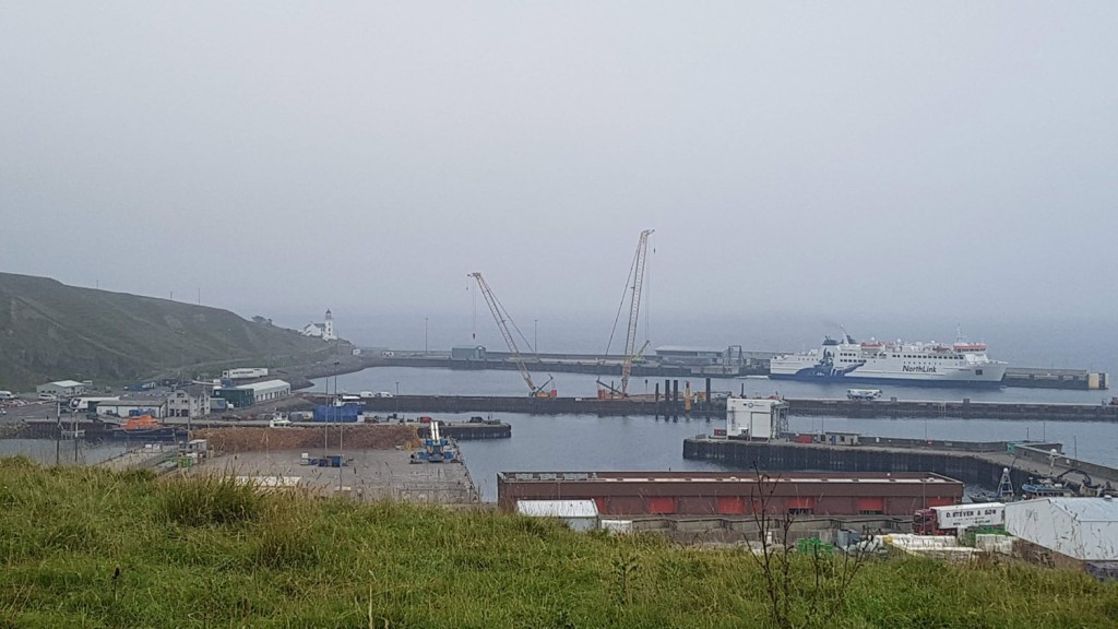 The wind farm at Hill of Lybster was fun to hike past, as was the Chapel and bridge crossing at Crosskirk. Mist and some drizzle came in as I hiked field margins past Brims Castle and then uphill to Ness of Litter. There is a Caithness Flagstone quarry there perched right at the edge of the cliff but the visibility had reduced now and it was just me and lots of sheep dodging around. I took the track down to Scrabster and by now the mist was down at sea level so I put my head down to walk into Thurso to finish. A long day of maybe 26 miles to wrap up the trip!