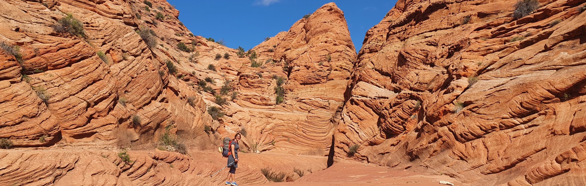 The Hayduke goes through some spectacular sandstone country in and around Buckskin Gulch and then picks up the Arizona Trail (AZT) for approx 65 miles. The AZT itself starts at the Mexican border in the south and finishes after around 800 miles at the Utah state border. We were hiking it southward ‘against Wainwright’, meeting lots of northbound hikers who were nearing their finish line. What this meant for us was that we had well maintained, clear trail to follow for the next few days!