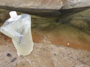 The water in the Colorado is silty, murky and cappuccino in colour as it drains the sandy, desert plateau. We used this water for our drinking supply but by taking care to let the silt in the water to settle to the bottom of our containers overnight, then treating with aquamira chlorine dioxide tablets, we didn’t have any trouble.