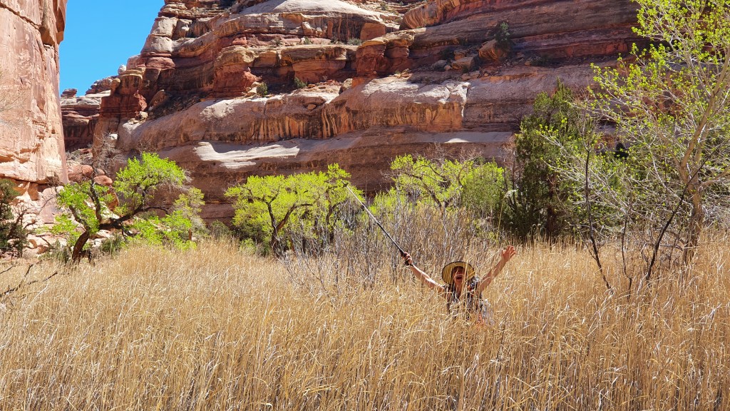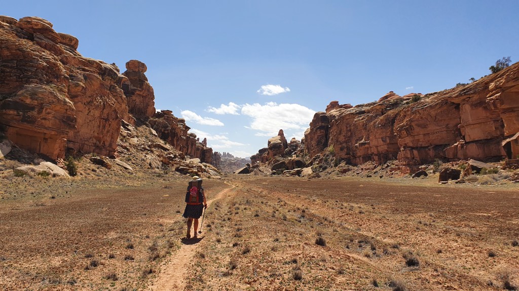 The Needles area of Canyonlands is mostly known for spiky stripy rock formations but it also has a sunken valley known as a graben called Cyclone Canyon which was a cool place to hike. This is not made by water erosion like most canyons but by a collapse of underground salt deposits.