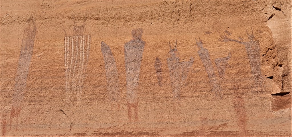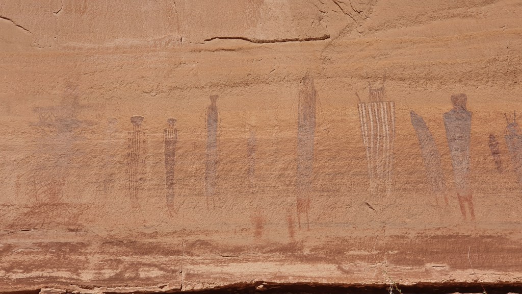 We were not the only people to find The Maze hospitable as seen in pictographs at the Harvest Scene panels lefts by people variously referred to as Fremont or Basketmaker people.