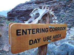 Another early start to beat the heat, hiking out with head torches and adrenaline pre-dawn. This has been a tough, too hot, but fantastic hike and we push on fast along the flat to meet up with the very popular South Kaibab trail. This is the normal way for people to hike down from the Grand Canyon rim to the depths of the Colorado river some 6000 feet below.