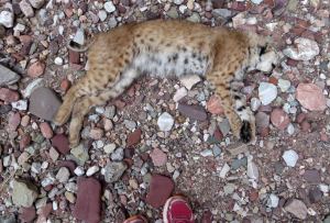 Wow- we then came across a fresh dead bobcat lying in the base of the canyon. It looked like it might have fallen from the rim down the cliff, poor thing.