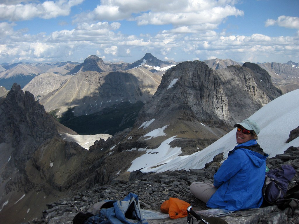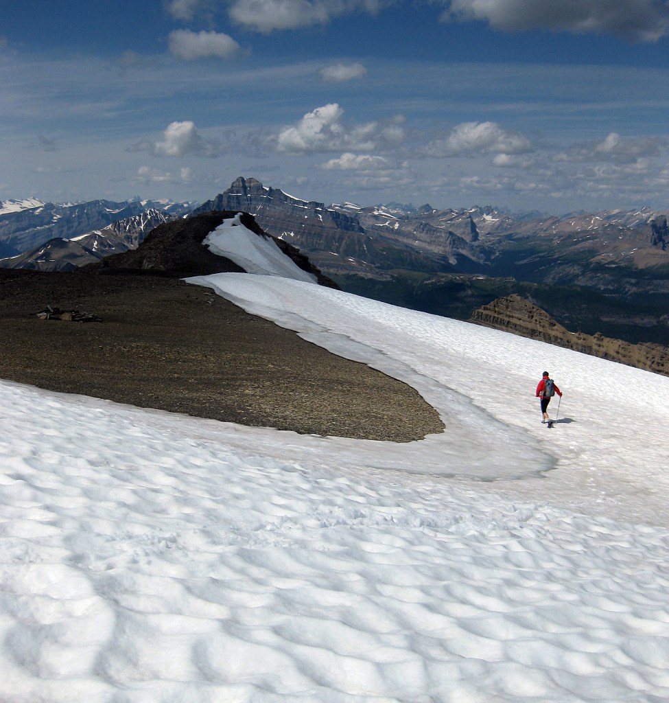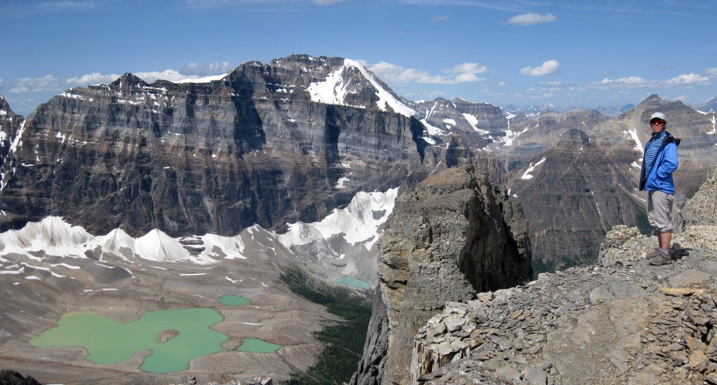 Eiffel Peak is near Lake Louise and south west of the more dominant Mount Temple (which we climbed in 2002). It is a magnificent viewpoint and thoroughly recommended.