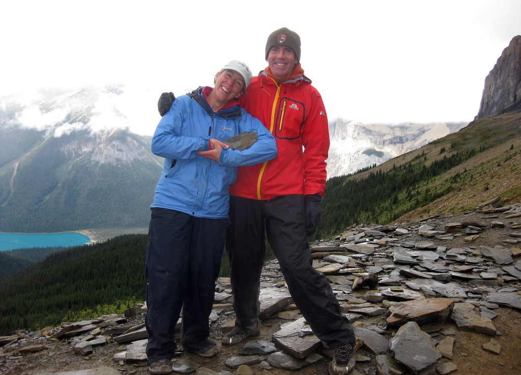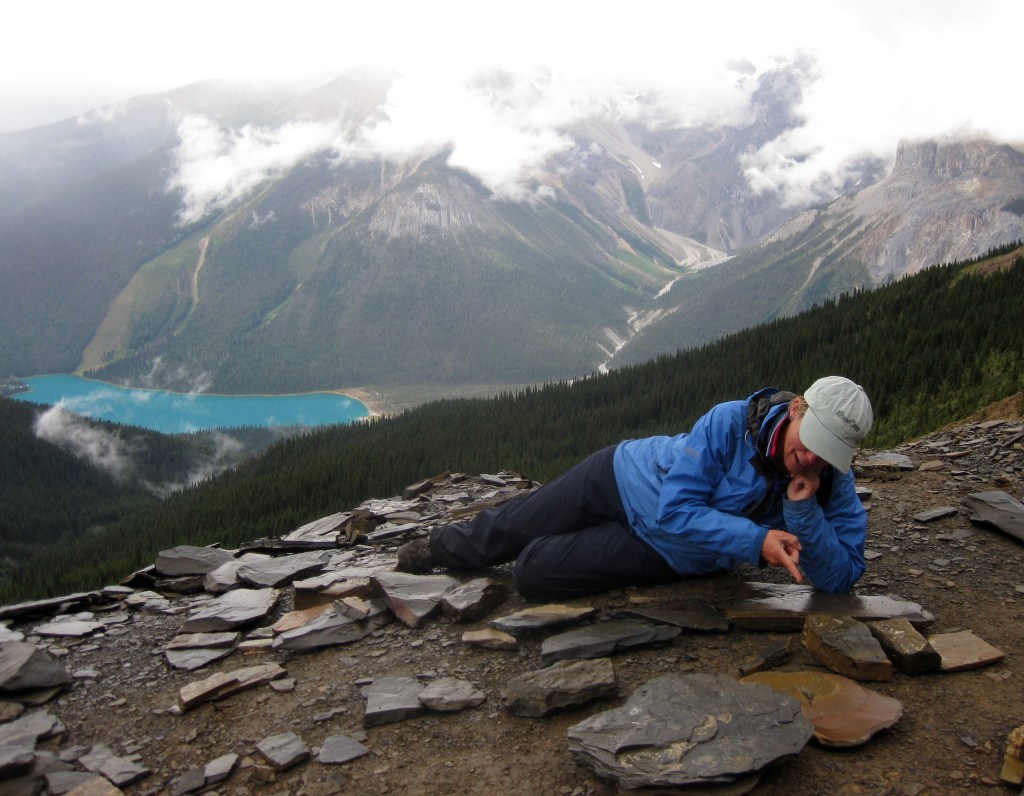 The Burgess Shale is an exceptional fossil area from the Cambrian Explosion on Wapta Mountain north of the town of Field. Access is restricted so we booked a Parks Canada Guided Tour up the hill to see the fossils.