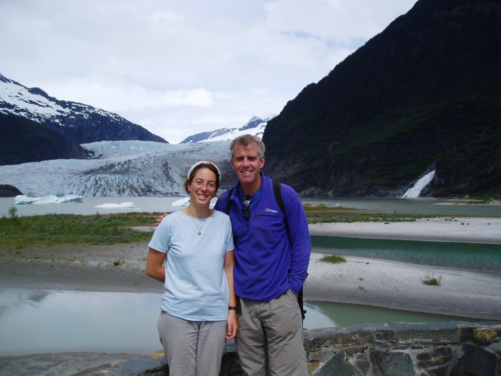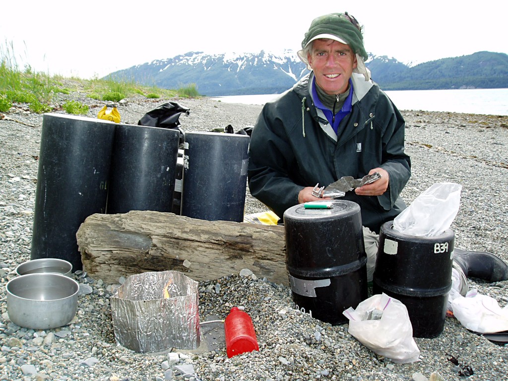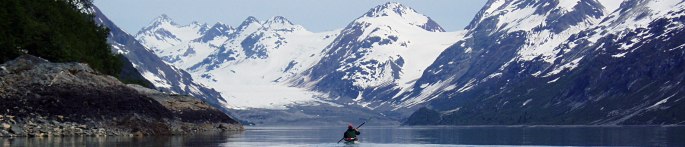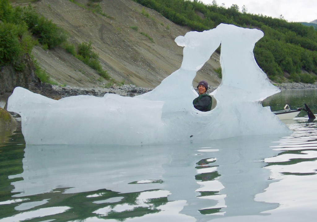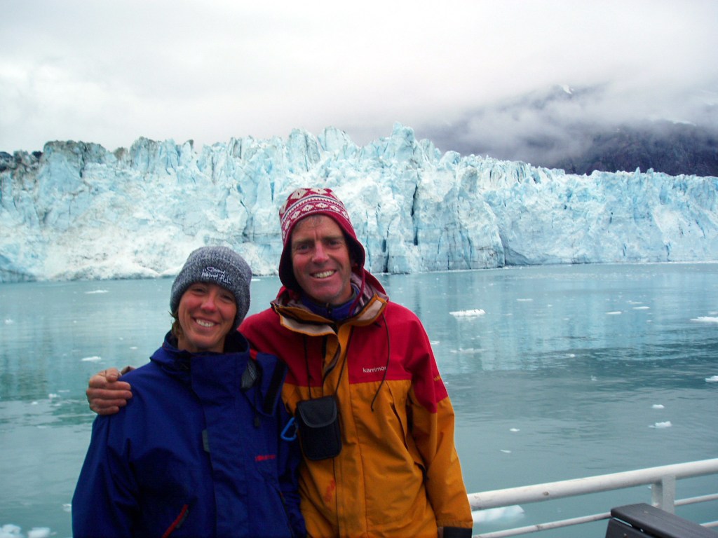We beach the kayaks on silt delta at the foot of Riggs and McBride glaciers. This was a stunningly dramatic place. The two glaciers don’t quite reach sea level anymore but Riggs in particular was impressive: a clean white, blue, one mile wide ice wall!
