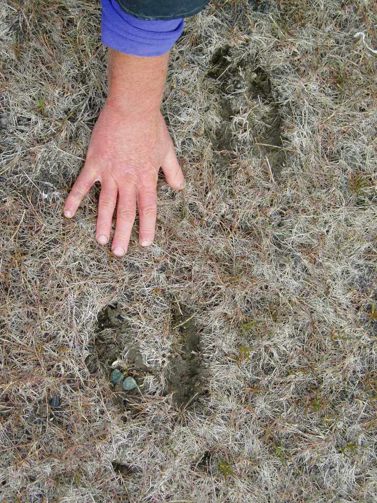 Exploring behind the beach we came across moose tracks and an interesting set of bear prints worn through the thin layer of ground moss leading to a tree with bear scratchings. It must be a common trail for the bears.