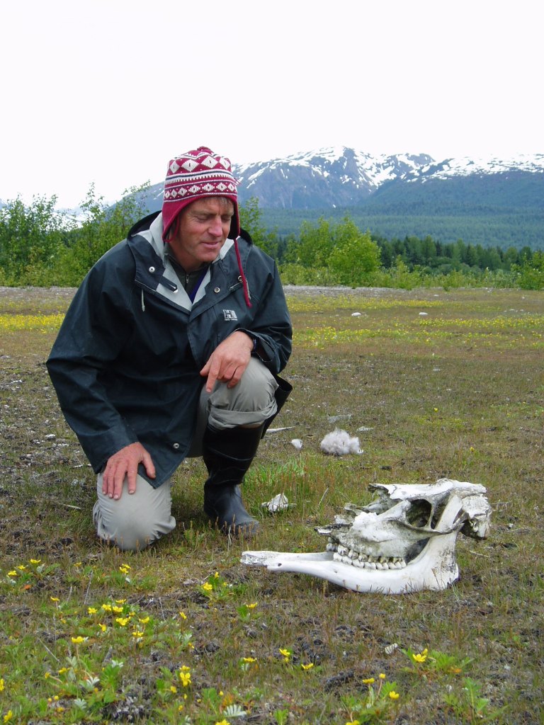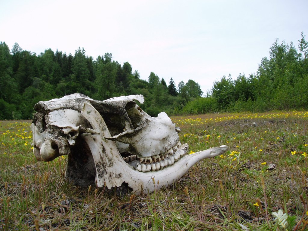We took a side trip eastwards into estuary like Adams Inlet and shot along with wind and tide in our favour. About 5 miles in we put ashore on a lovely silty area backed by meadows only to see lots of signs of moose including a beautiful well preserved skull and vertebrae.