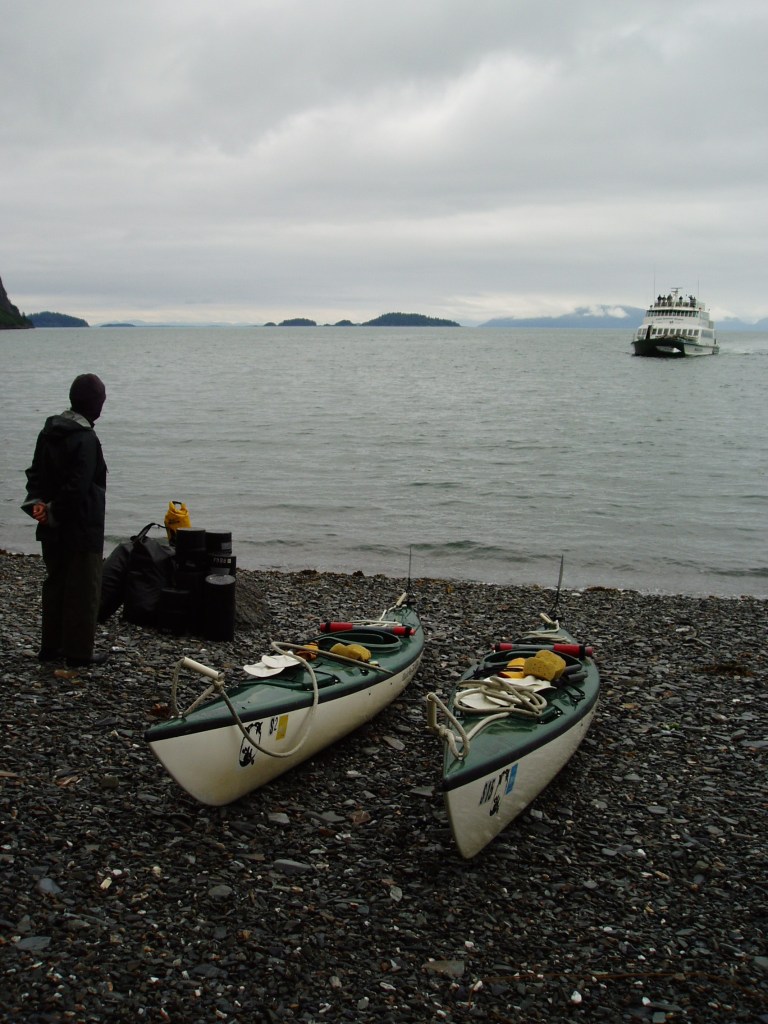 The boat was of course full of tourists doing a trip around Glacier Bay west arm so we settle in for a relaxing and scenic day out in beautiful scenery with breakfast coffee and cookies! Later that evening at Bartlett Cove we camped (the lodge cost $200), but had that much sought after shower and a Mexican meal with beer. What a great trip.