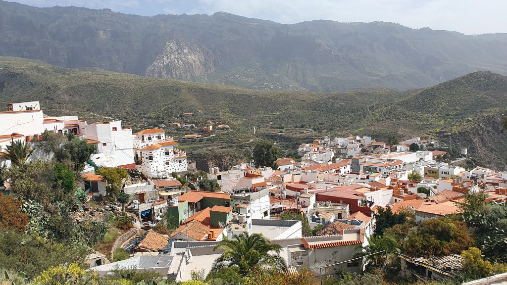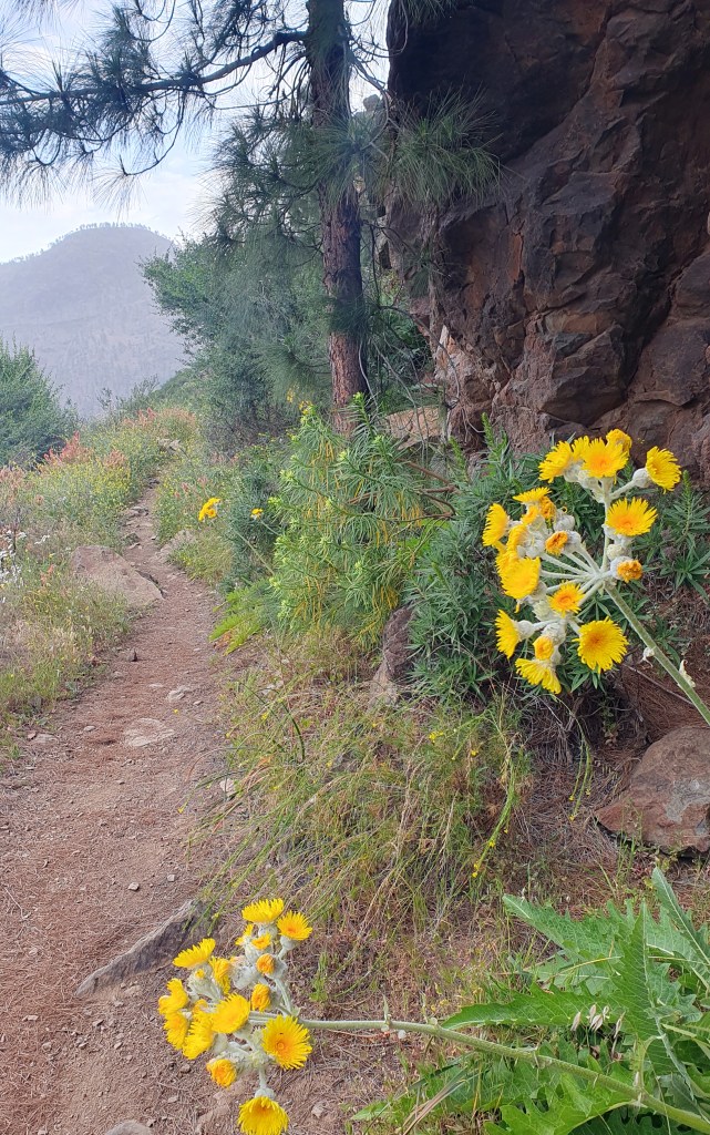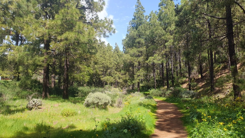 In the morning I met another hiker, Nikoli from Belarus and we had a chat at Artenara, a picturesque village overlooking the steep sided valley to the south. The way ahead was mellow, wandering through pine clad hills with views out west down to the sea. I stopped off at the recreational area of Tamadaba for lunch in the trees then headed north to plunge downwards towards the sea at Agaete.