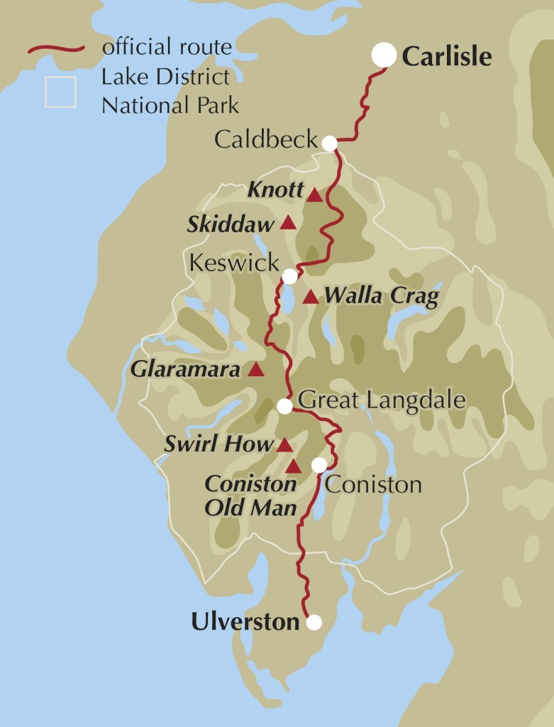 The Cumbria Way is a 70ish mile long route north-south through the Lake District National Park in northern England. Brian hiked this over 4 days and 80 miles in August 2022 with some variations to ‘bag’ and camp on hill summits.