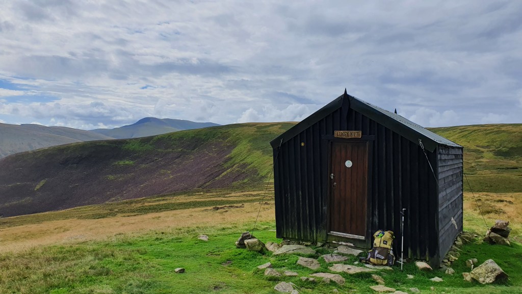 Caldbeck is a lovely village with a campsite, 2 cafes, pub/hotel and friendly village store. From here the route climbs into the ‘fells’ of the Lake District to High Pike with panoramic views south to the hills to come, out east to the Penines and back north to Scotland. There’s a cool small wooden hut on the way – ‘Lingy’ – maintained by the Mountain Bothies Association which would be a good overnight stop.