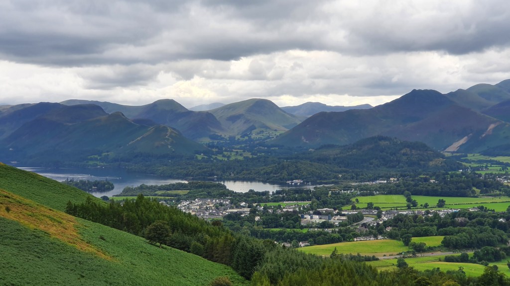 I deviated off to ‘bag’ Knott, another hill nearby that I hadn’t climbed before. It was well defended though with boggy, tussocky ground so was hard going! Back on the Cumbria Way I passed Skiddaw House then followed a viewful balcony trail around Lonscale Fell into the ‘bustling’ town of Keswick.