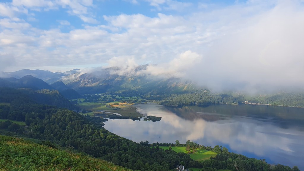 I took an alternate to the main Cumbria way by heading along some hill tops on the east of Derwent Water, rather than the official route which goes down the west side at low level. This also provided a great camp spot near Walla Crag….
