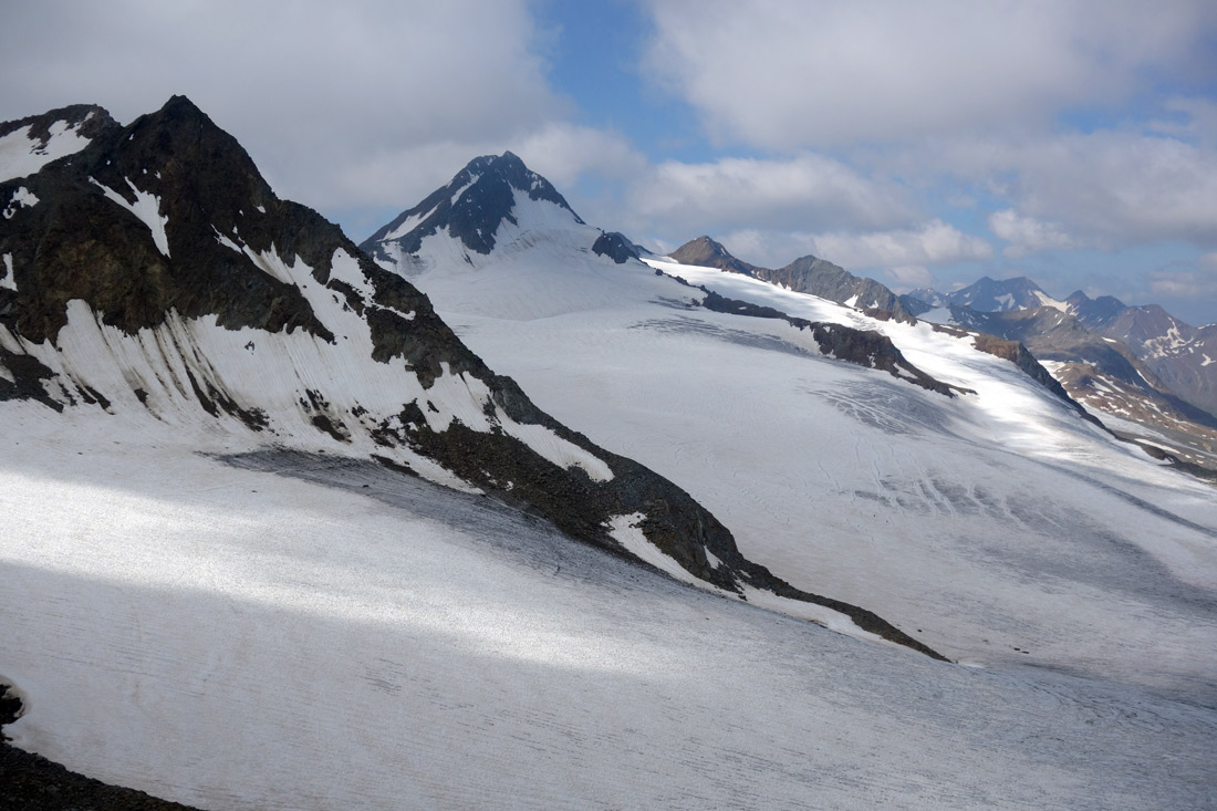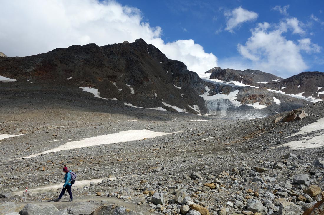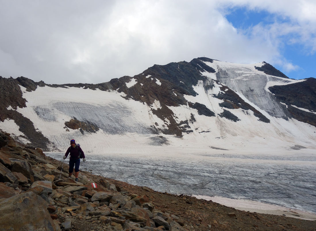 Thoughts on the hike We followed marked trails all the way on this trip but they took us through some incredible alpine scenery. Many times the trail looked improbable but wound its way through boulder fields, snow slopes, high passes and scrambles aided by ‘via ferrata’. The addition of an extra scramble to the summit of Inner Wetterspitze (3050m) was a great bonus.