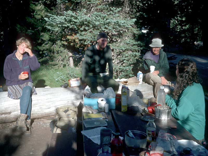 Our hiking was going well in this scenic area and with 10 miles to Tuolumne we were pleased to see the familiar figure of Eric hiking out to greet us. Gordon appeared as well at the waterfalls of Glen Aulin – his tendon had recovered well and sufficient to be able to hike out for a 14 mile round trip to here. After a cool dip in the pool below the waterfall we made the final seven miles to the road at Tuolumne Meadows in style and the four of us had a celebratory huge Mexican meal in the nearby town of Lee Vining that evening.