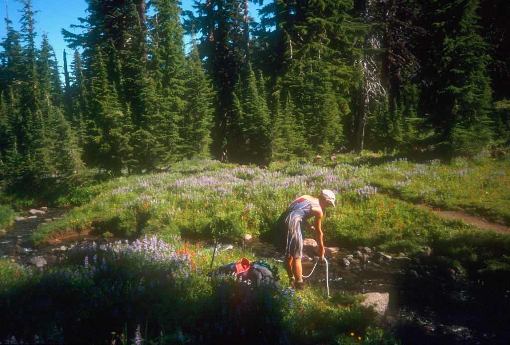 Echo Lake to Tuolumne Meadows Sunday 13th September Our next section of the hike at 155 miles to Tuolumne Meadows was to be one of the longest between resupplies and, with the reputation of consisting of lots of steep climbs, we made sure we had plenty of food for fuel to keep us going for the estimated seven days hike. Sam, the owner of the Sunset Lodge where we stayed kindly gave us a lift from South Lake Tahoe back up to the trail at Echo Lake. Here we left a note for Hikin Mike as we hoped to meet up with him along the trail.