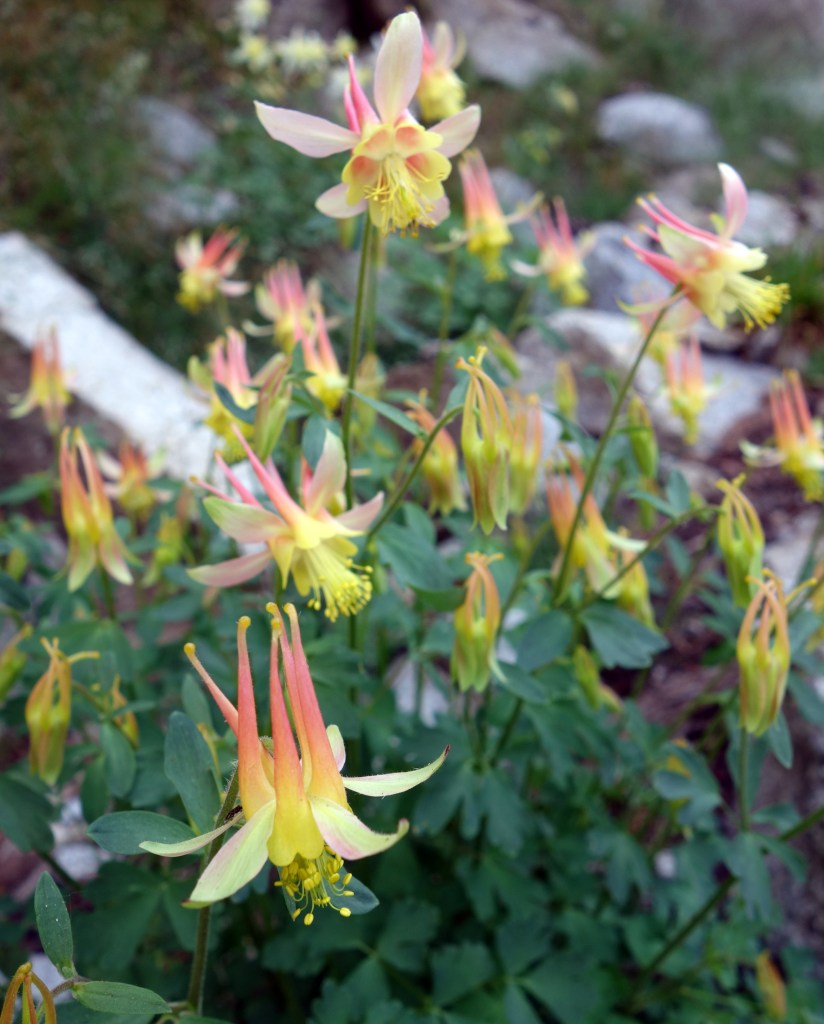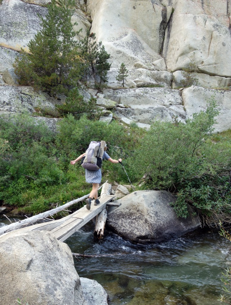 We hit trail for the first time today as we descended gradually down past Gaylor Lakes and meadows dotted with white granite boulders. Surprisingly a whole bunch of tiny frogs hopped across the path through the meadow at one point – we found out later that these were tree frogs – cool!