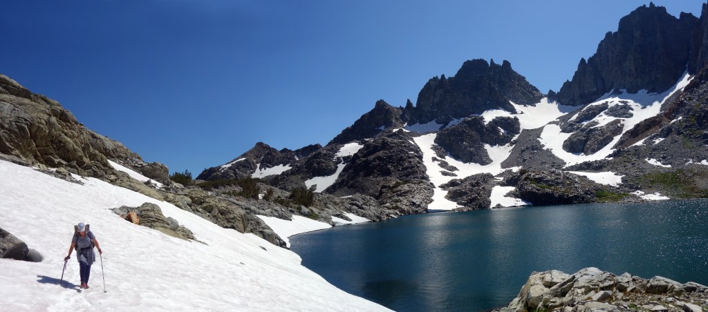 On this 6 day hike we took the bus from Mammoth Lakes ski area to Reds Meadows then followed the ‘Sierra High Route’ for 4 days to the road at Tuolumne Meadows. This was a mix of cross country and trail over some beautiful mountainous terrain past Ritter and Banner Peaks. We returned back south for 2 days via Koip Peak Pass on quiet trails, way east of the busier John Muir Trail and lovely in a more sparse arid way with wide expansive views.