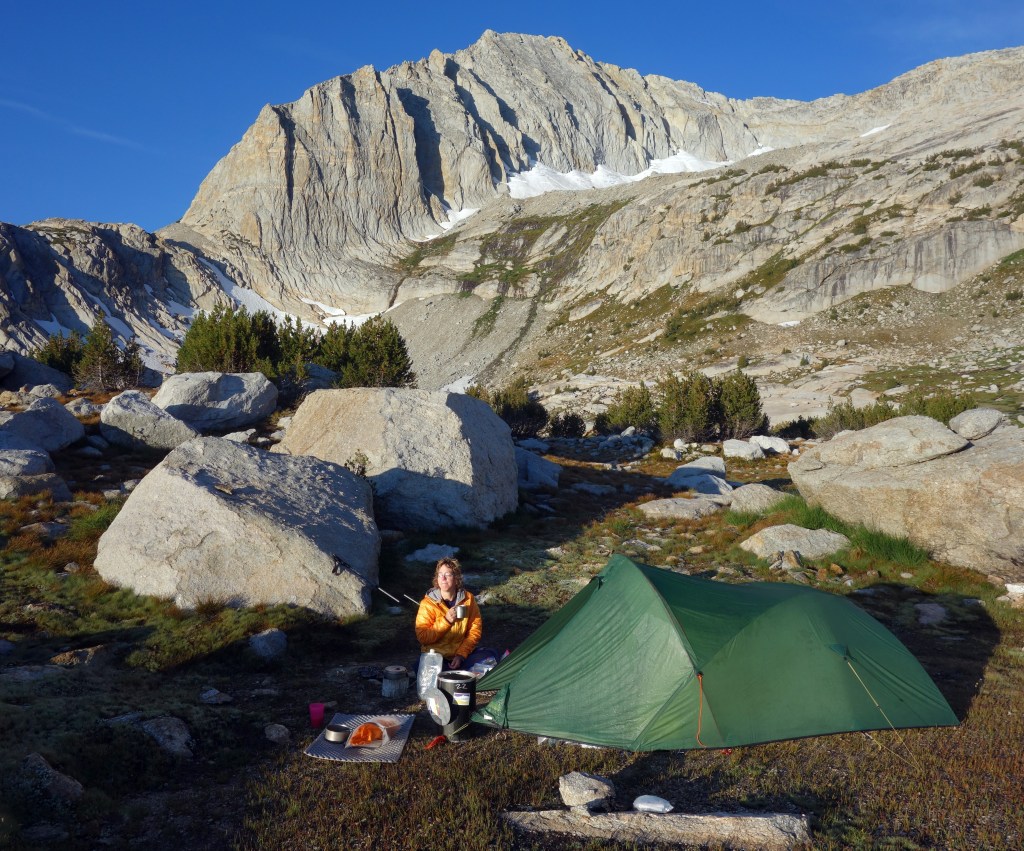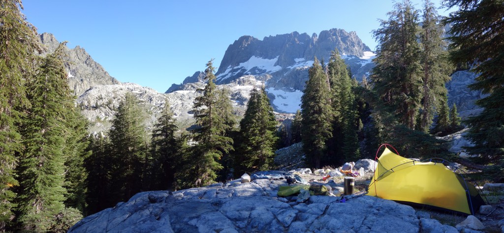 Cascade Lake camp in the morningUp Mt Conness east ridgeNear Mine Shaft Pass