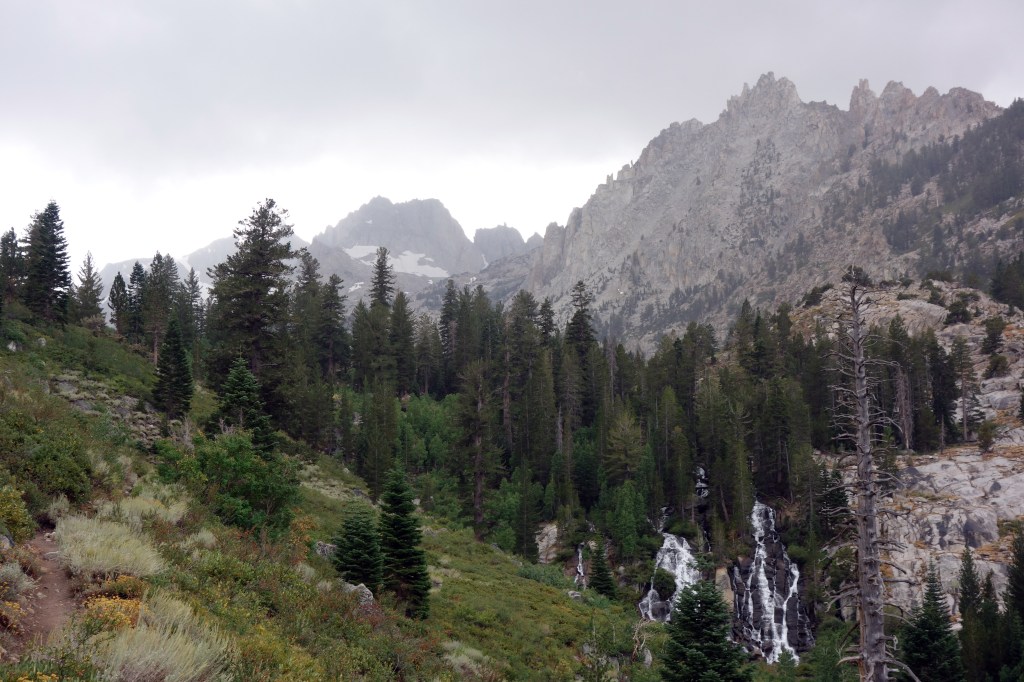 After a cold camp that night we ascended up to Silver Pass at 10,900 feet with some hail on top to greet us so we descended quickly to camp down at Pocket Meadow. It hailed heavily that night and we had to get out our sleeping bags in the dark to move the tent as a large puddle had gathered underneath us.