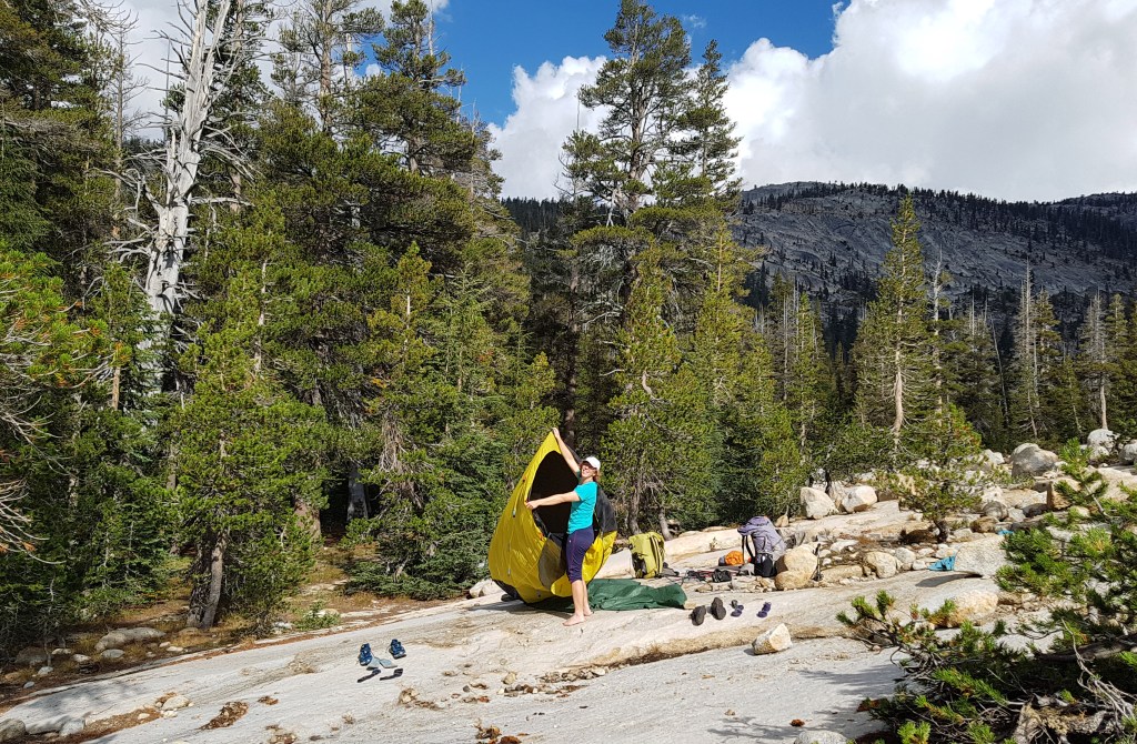 Our hiking rate was increasing again and we managed 26 miles the next day to put us back on target for our Tuolumne Meadows rendezvous. At Dorothy Lake we met some rangers on horseback out looking for an escapee horse that had been lost by a tourist! Unfortunately we couldn’t help them. The route crossed a few deep canyon like valleys giving us lots of ascent and descent but the sweeps of granite slabs and walls and the wilderness feel made up for it easily.