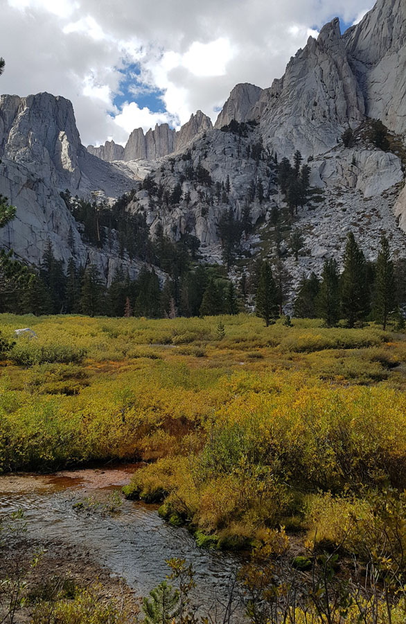 Tuesday 24th September 2019 The final hike of our holiday and we chose a southern part of the Sierra mountains near and over Mt Whitney. We picked up a permit easily again and left the car near the town of Lone Pine, relying on hitching a lift to the start at Cottonwood Lakes.