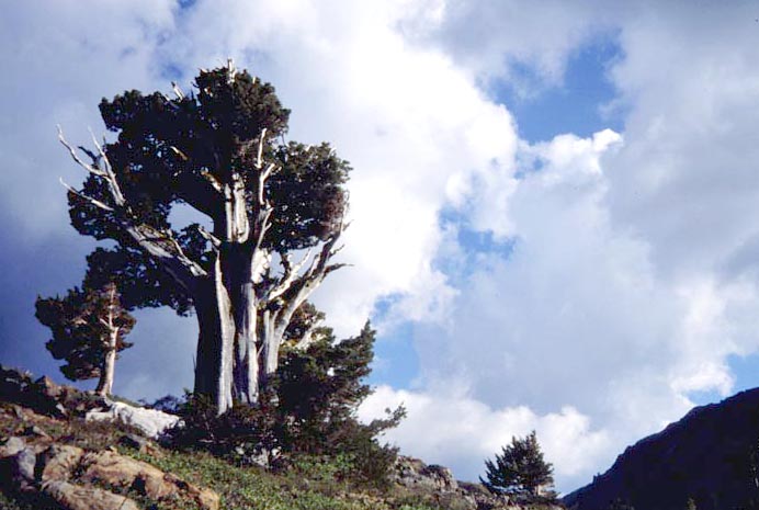 The Sierra juniper is one of the hardiest of all mountaineers. Growing mostly on ridges and rocks, these brave highlanders live for over twenty centuries on sunshine and snow. Thick and sturdy, junipers easily survive mountain storms. A truly wonderful fellow, he seems to last about as long as the granite he stands on. Surely he is the most enduring of all tree mountaineers—never seeming to die a natural death. If protected from accidents, he would perhaps be immortal. I wish I could live like these junipers, on sunshine and snow, and stand beside them for a thousand years. How much I should see, and how delightful it would be!