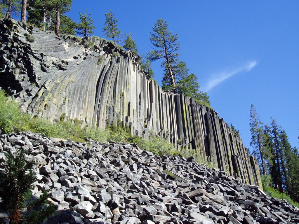 We passed by the Minarets mountain area the next day- home to lots of great rock climbing- and were stopped by a female ranger out hiking who asked us for our park permits. This was the first time we had been asked in our whole trip and, as we had convinced Mike that he wouldn’t need one, we had to do some serious persuading with the ranger to let Mike off. Hiked past Devil’s Postpile Monument- a basalt columned rock structure which was impressive but a bit like our Island of Staffa off the coast of Scotland but not as spectacular!