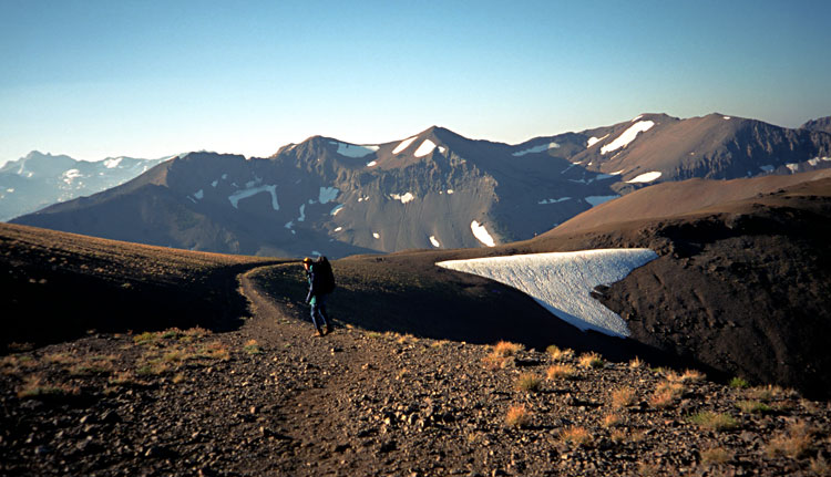 Mike left us at Sonora road pass to attend a wedding, after which we climbed up on to the ridge crest where we collected some ‘grainy’ water from a snow patch right on the ridge. We enjoyed some sublime hiking here along volcanic ridges with panoramic views.