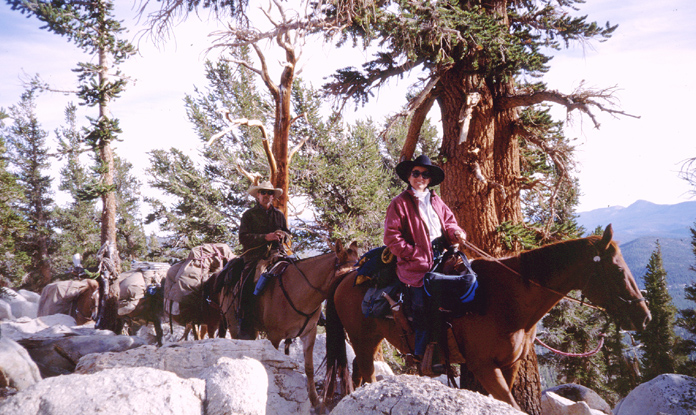 Near Big Whitney Meadows we were surprised to meet two friendly horse riders who were also out on a backpacking trip into the mountains. Apart from them we hadn’t met anyone else since Kearsarge Pass. The spectacular mountain scenery began to flatten out a little as we wound round tree lined peaks southward into an amazing stark granite, sandy landscape with unusual dry dead trees. We guessed that breakdown of trees takes a long time in this high dry climate.
