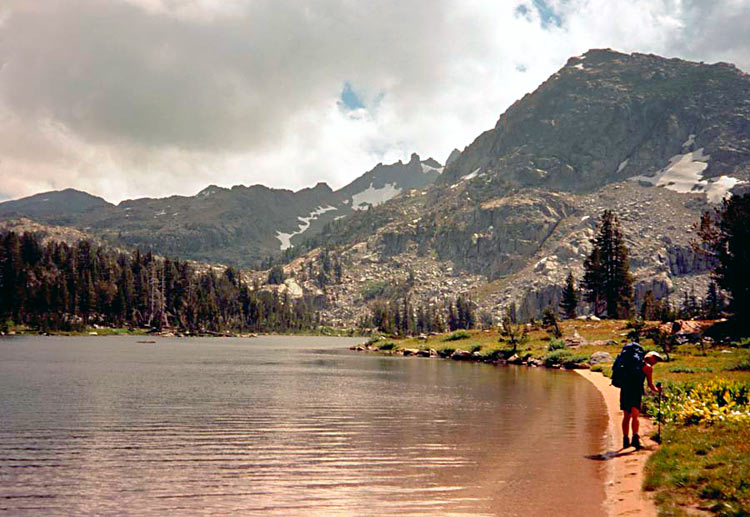 Eric surprised us by going for a pre breakfast dip in the cold lake before we set off to cross into the splendidly named Desolation Wilderness. The scenery improved here to one of crystal clear lakes etched out into a bare granite mountain-scape. Dick’s Pass at 9,400ft gave great views north and south across the region and our descent into a lake filled valley provided marvellous hiking.