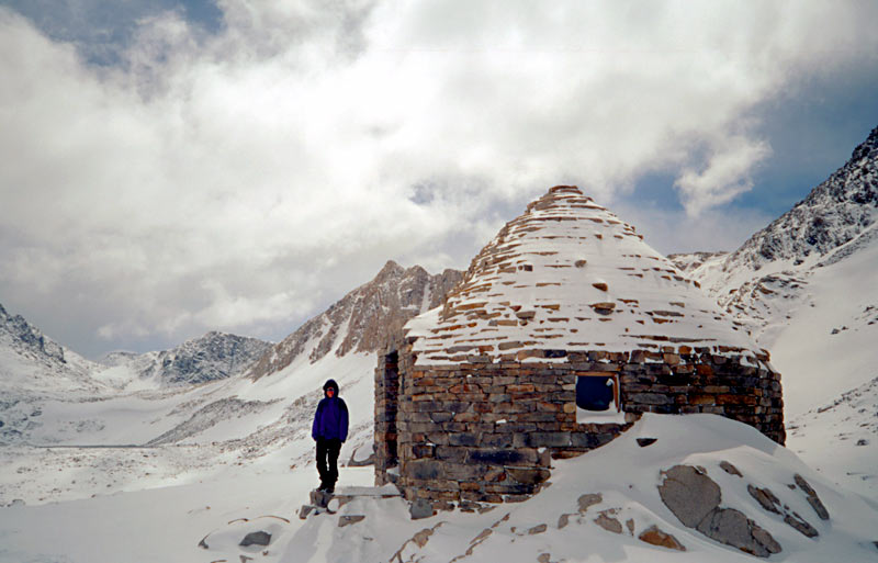 Although the weather was certainly crisp and cold, we did have the great advantage that this normally popular hiking area was now virtually empty as this was considered post season to most. As for us, we were having one of the best days of our entire hike out there. I picked up some dead wood for a fire and filled up with water as our aim was to stay in the Muir Hut at the top of 11,955 foot Muir Pass (John Muir made a big impact here!). This is a remote stone shelter or ‘bothy’ as it would be called in Scotland. We made it there in a tired state at 6.30pm with temperatures well below freezing but it was a welcome sight.