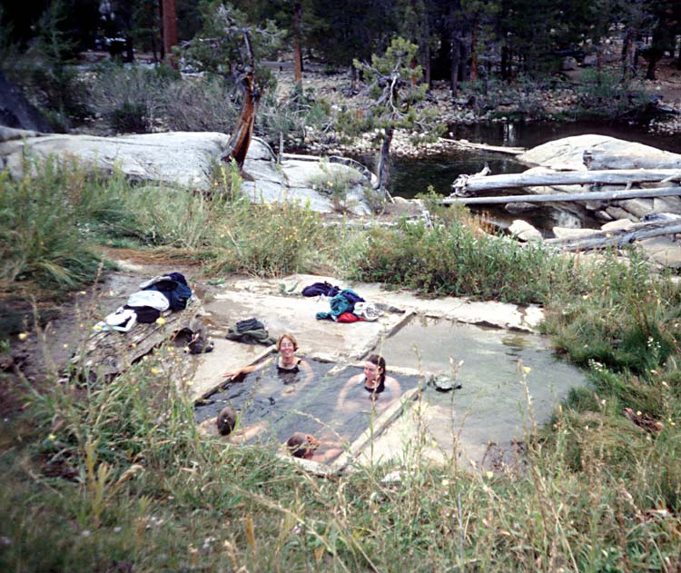 We rented a caravan as cold, snowy weather set in and had lots of good food, borrowing a tape player and generally having a ball. It stayed wet and cold the next day so we got a lift down to local Mono Hot Springs with Scott and Rebecca for a refreshing dip.