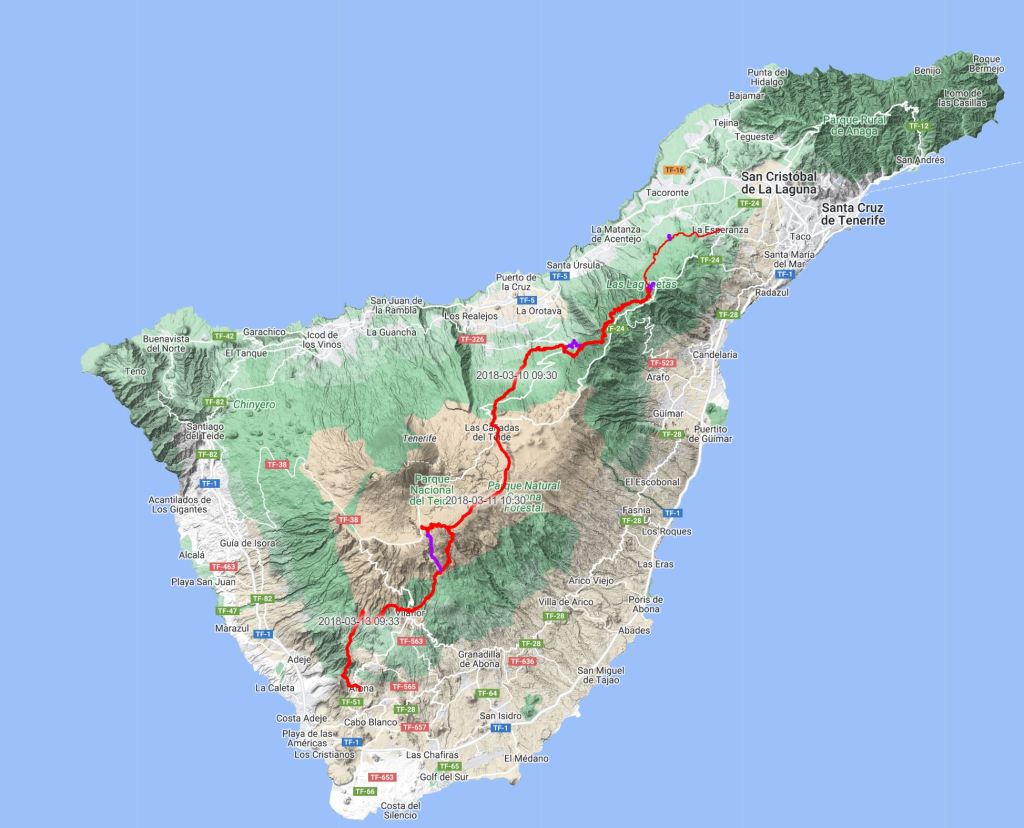 The GR131 crosses from coast to coast on most of the Canary islands but in Tenerife it terminates inland at both ends. Possibly this is due to Tenerife being heavily populated around the tourist coastal fringe and creating a scenic trail in these parts is more difficult.