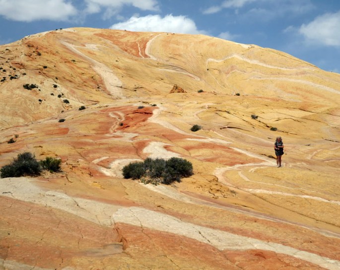 This year we followed the Hayduke route down Upper Courthouse Wash as opposed to 2014 where we took an another route described by Nic Barth ‘Arches Slickrock Alternate’ (green on the map). This slickrock line was way more enjoyable and scenic in my opinion – but did involve some Class 4 downclimbing down into the canyon.