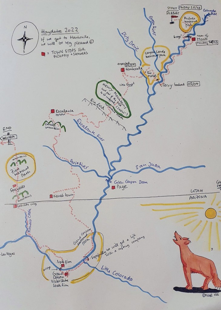 Route We had plenty of time to spend in Arches NP to align with our permits for the next section so took a longer indirect more scenic route in parts than the Hayduke. We walked from Moab Canyonlands Airport, across H191 to Tower Arch, then NE across Salt Valley to the Devils Garden, back SW across salt Valley following the pipeline to the Hayduke and Courthouse Wash.