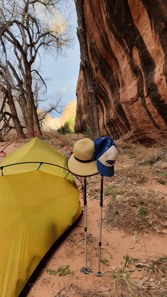 Now we are having our first town stop in Moab, another outdoorsy place. To our great delight it has been raining last night and today which will fill the rock holes, boost the streams and enliven the springs we depend on for water as we hike on along the mighty Colorado from here.