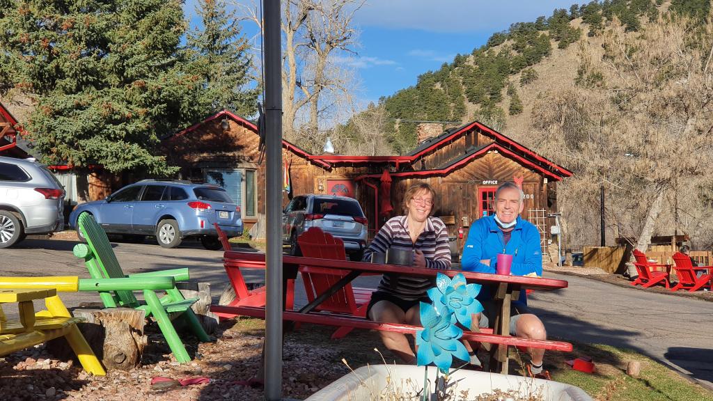 Winter was still lingering in the foothills of the Rocky Mountains near Boulder. Paths amongst trees held compacted old snow and the vegetation was parched. We went for a walk around the Flat Irons (rock formations above the town) in bright sunshine and cold clear air.
